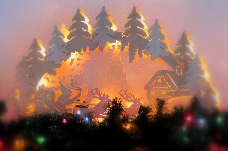 Daarna ging ik het kleine (bleche) boompje, kerstman en meer versieringen neerzetten. Daar mochten ze wel bij blijven. Dat ging al een stuk beter. Alles moest wel even geproeft worden waar gelijk een straal water achteraan kwam.