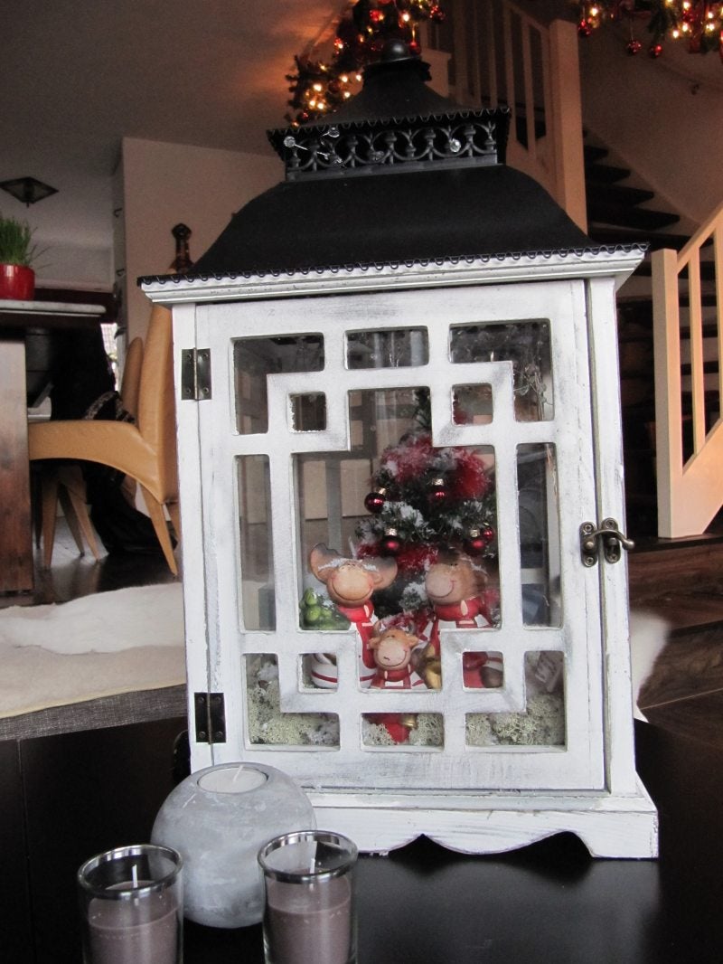 Er is altijd wel iets te doen, zeker nu ons huis is gehuld met kerstversieringen. Het is daardoor ook een grote uitdaging om ergens aan te hangen of eruit te slaan etc. zo heb ik gisteren i.p.v. een kerststukje op tafel een kerststuk gemaakt in de lantaarn. En nu is het dan de kunst om de deur open te krijgen.
