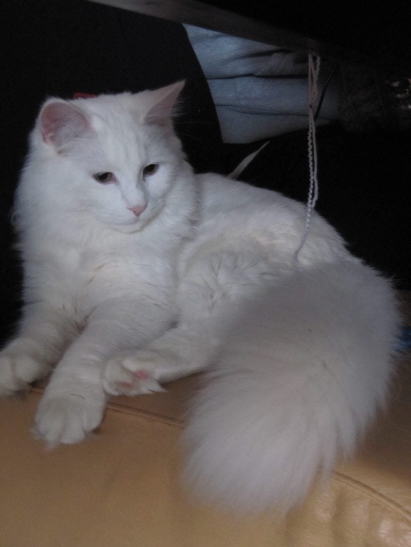 Zoals alleen al vanmorgen. Als ik de deur van mijn werkkamer opdoe dan rollen drie kittens over elkaar heen om zo snel mogelijk de kamer uit te kunnen. Moortje doet 1 oog open en rekt zich even heerlijk uit en gaat vervolgens op zijn gemakkie de kamer uit richting beneden. Op de trap zie je hem kijken wat hij kan doen. Als Jip voorbij loopt geeft Moortje een paar meppen op haar kont. Jip is dat onderhand wel gewend dus loopt gewoon door. Dus geeft dat Moortje niet het gewenste effect. Dan valt zijn oog op Oma Saartje. Hij rent op haar af en gaat provocerend voor haar staan. Saartje kijkt hem niet aan een geeft duidelijk aan dat hij ver onder haar stand staat. Ook niet het juiste effect. En dan....ziet hij Kitty. Hij rent op haar af en gaat een eind ervandaan loeren om dan vervolgens dicht op haar af te komen met wat afstand, want Kitty kan nog wel eens fel van haar afbijten. En Kitty geeft dus wel het juiste effect en dat is me daar leuk. Als Kitty dan uiteindelijk weg loopt gaat Moortje mee en loopt dan voor haar, naast haar en achter haar. Kitty blaast en gromt er op los maar dat hoort Moortje niet en alle andere signalen die ziet hij voor het gemak maar niet. Als Kitty dan zo hard blaast en gromt gaat ze hoesten en proesten, dan grijp ik in met de plantenspuit. Kitty gaat dan naar buiten of in het berghok. Moortje kijkt dan om zich heen met wat hij nu eens zal gaan doen