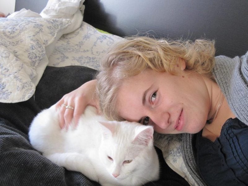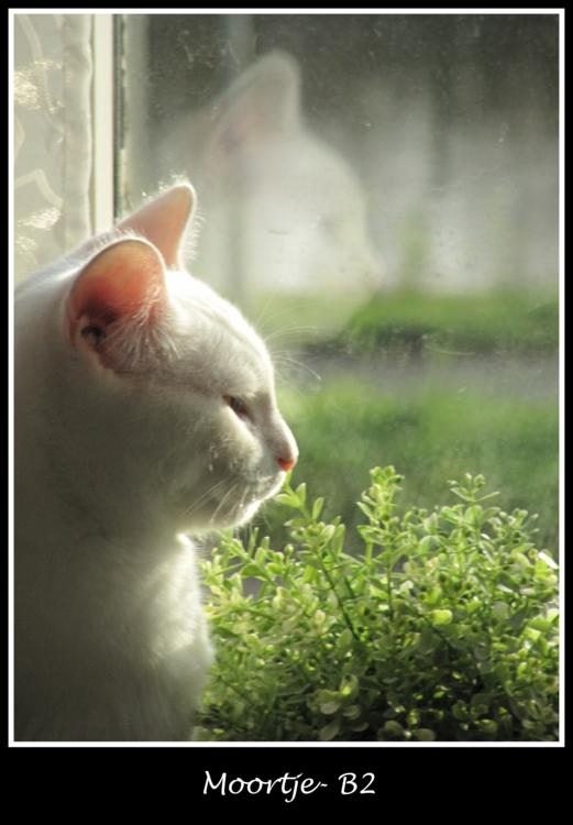 Bij thuiskomst was de vloer van buitendeur tot de trap drijfnat en op de trap zat een klein druipend katje. Muisje was in de sloot terecht gekomen en gelukkig er ook weer uitgeklommen en is met schrik naar binnen gevlucht. Ach, was zo zielig. We hebben haar en de vloer weer gedroogd en ze is uren bezig geweest met wassen. Ze wilde ook niet meer naar buiten. Gisteravond ging ze toch maar weer voorzichtig en heel eventjes. Vanmorgen zag ik haar zitten bij de waterkant met gepaste afstand. Ik ben heel blij dat het haar lukte om er weer uit te komen. Je zou niets vermoedend een kat kwijt raken. En Muisje weet nu dus dat ze niet te dicht bij het water moet komen.