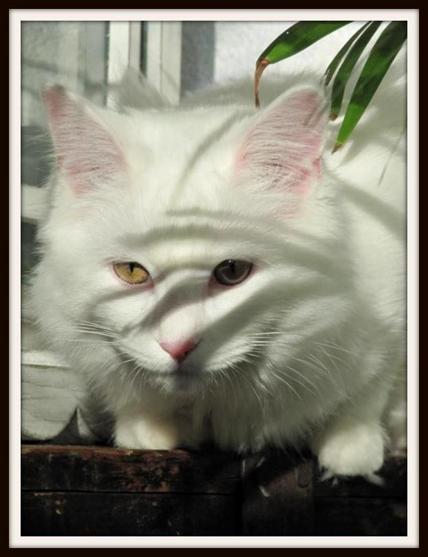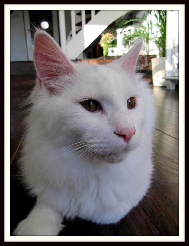 De jongens lopen weer gewoon rond of er niets gebeurt is. Ik geloof ook dat ze het al helemaal vergeten zijn. Wat wel zeer opvallend is is dat Moortje heel wakker is en erg ondernemend. Het lijkt me sterk dat dat nu al door de castratie is maar het is er opmerkelijk. Hij verzint de meest spaande dingen maar vergeet er even bij dat hij nogal groot en log is. Waardoor de planten in de vensterbank van plek veranderen of eraf liggen. Mij kandelaar op de piano (ik dacht dat dat wel een veilige plaats was) zag ik vanmorgen gevaarlijk heen en weer gaan maar bleef gelukkig staan. Hij klimt elegant op onze eethoekstoelen maar door zijn 41/2 kilo laat dat ook zijn sporen na. En dan ken kijken met een schijn koppie, leuk he!!