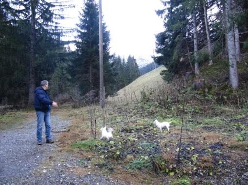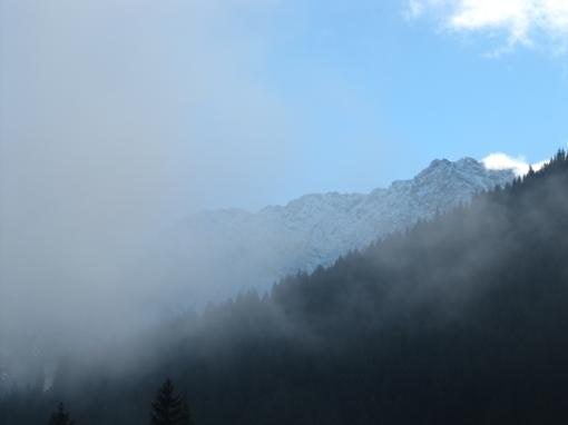 Vanmorgen was het weer behoorlijk mistig. Eerlijk gezegd zat ik daar nou niet meer zo op te wachten. Maar na een uurtje begon de zon steeds meer terrein te winnen en na een paar uur was het weer prachtig weer. Dus gingen we plannen maken voor vandaag. En dat werd eerst Linderhof maar die was tot 1 december dicht dus gingen we naar de andere, Neuschwanstein. Was ook nog tamelijk dichtbij. Hoe verder wij van Berwang wegreden hoe mistiger het werd. bij aankomst van het kasteel was het zo mistig dat we het kasteel helemaal niet zagen. Nadat we de auto hadden geparkeerd liepen we naar de kassa. De honden mochten niet mee, die hadden de taak om op de auto te passen. We stonden in de rij en waren haast aan de beurt en ik ging twijfelen. De kans dat we midden in de wolken zouden lopen was zeer groot dus blijft alleen de bezichtiging binnen over. Heb ik daar dan wel zoveel geld voor over. Niet dus. We zijn weer verder gegaan. Bij een restaurant koffie en thee gedronken en de auto weer opgezocht. De honden vonden dat een heel goed plan....wij ook.