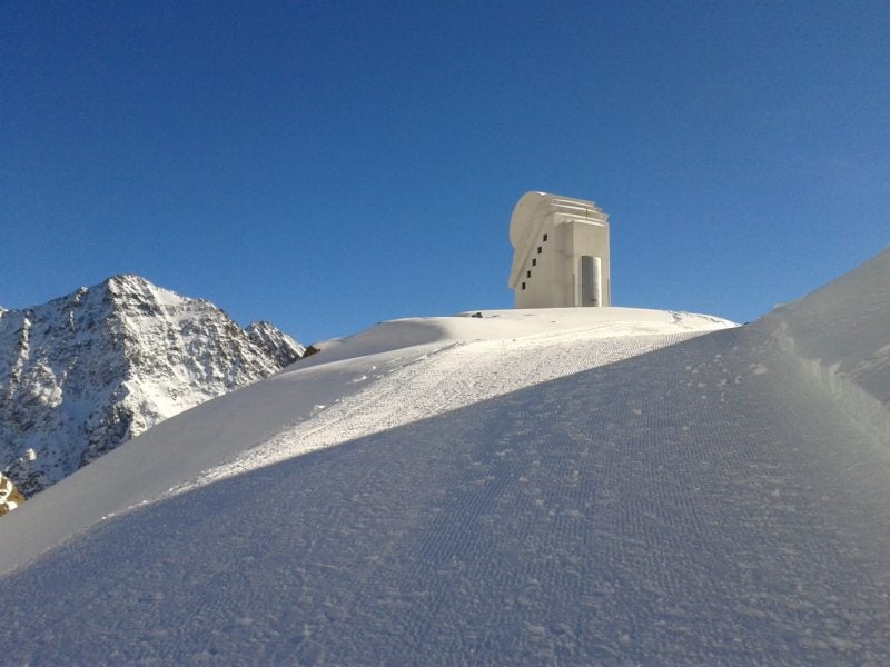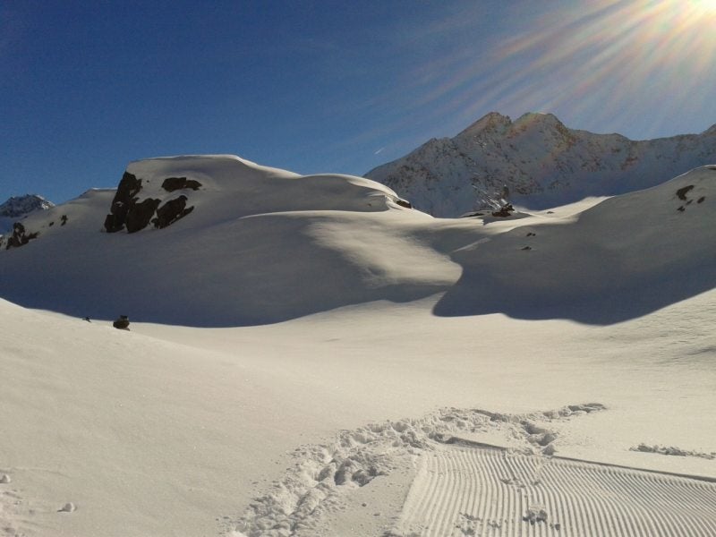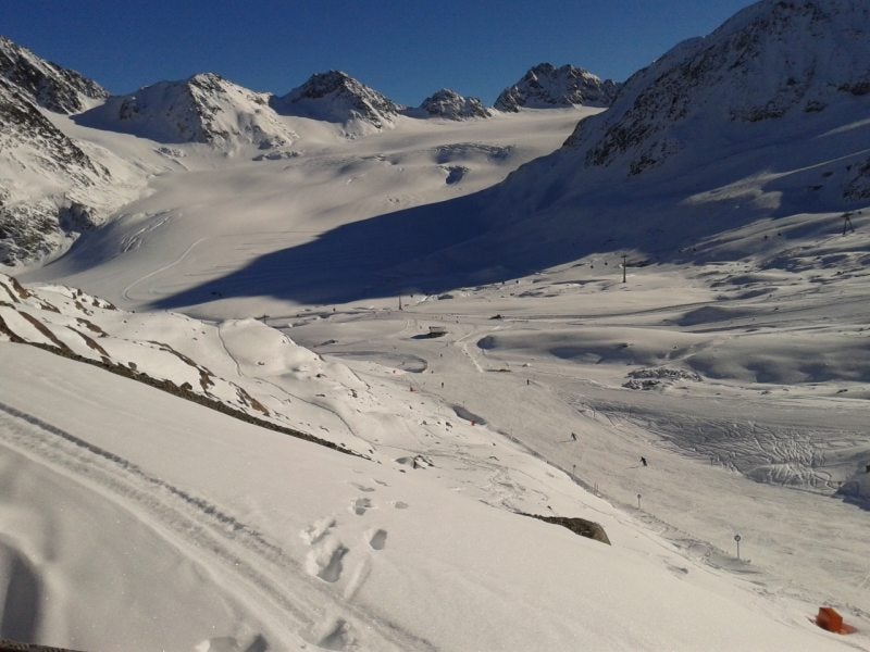 Vannacht heeft het gevroren waardoor het vanmorgen helemaal wit was van de rijp. Ook dat was prachtig om te zien. Vandaag stond Pitztal op de planning dus gingen we na het eten op pad. Bij Pitztal aangekomen zet je de auto bij een parkeerplaats en wordt je met de shutllebus naar het beginpunt gebracht. De bus stond al klaar voor vertrek dus daar hadden we mazzel mee. Zo ook met het treintje. Nadat we de kaarten hadden gekocht konden we in stappen en een minuut later vertrok hij naar boven. Razendsnel gaat hij in 8 minuten van 1740 mtr. naar 2840 mtr. Dit treintje gaat dwars door de berg heen. Erg saai en dan duren acht minuten best wel lang. Maar boven aangekomen maakt alles het ook weer goed. Wat prachtig. Jip ging gelijk al helemaal uit haar dakkie en storte zich in de sneeuw en je zag haar ook helemaal verdwijnen. In het restaurant dronken we op het terras koffie en thee en zijn daarna gaan lopen. Het is duidelijk geen wandelgebied. Dat kan daar dus helemaal niet. We zijn een stuk naar boven gelopen op de geprepareerde stukken waar weinig mensen kwamen. Maar ook daar moest je uitkijken want soms zakte je een halve meter in de sneeuw, erg leuk natuurlijk. Maar na een tijdje hadden we het ook wel weer gezien en zijn we weer naar beneden gegaan.