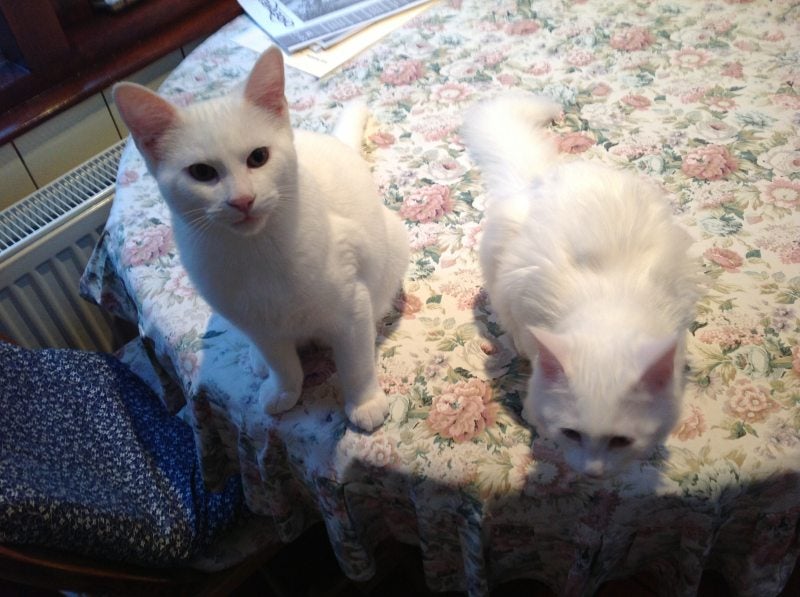 Yeti en Broke zijn voor een tijd logeren bij Oma Bijl door omstandigheden. Ze hebben het daar geweldig en Oma vindt het ook prachtig. Ik ben heel erg blij dat dit zo even kan. toen ik hun bracht gingen ze gelijk op de tafel zitten en gebiologeert naar buiten kijken. Er vlogen allemaal blaadjes voorbij en kijk....allemaal vogeltjes. Ze liggen heerlijk op de stoel te slapen en hebben hele gesprekken met Oma. Ze worden wel soms even opgesloten want anders kan er niet gewoon gegeten worden en dat begrijpen ze, ze gaan gedwee even in de badkamer waar hun slaapmandje staat.
