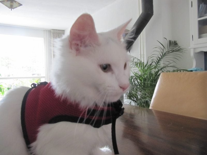 Wij gingen direct op vakantie toen de laatste kittens weg waren daardoor kon Muis ongestoord beneden zijn. En dat deed ze ook, languit in de kamer liggen etc. Bij thuiskomst was ze ook totaal niet van plan om dat op te geven. En dat vinden honden eng, een kat die ze negeert en blijft liggen. Ook Anouk. Met het gevolg dat ze met een grote boog om haar heen liepen. Toen ze drachtig was werd de boog nog groter, ze waren vol ontzag.