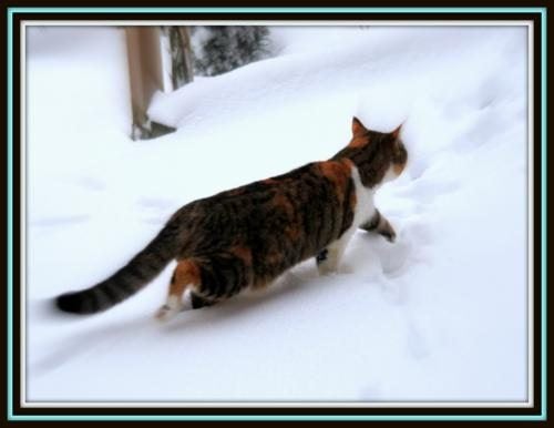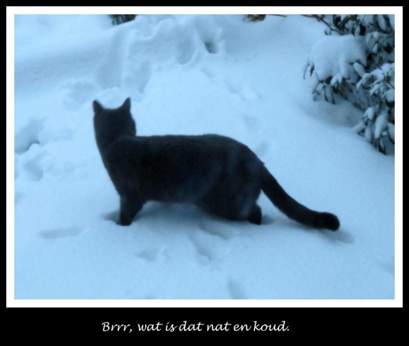 Jip, ja Jip is de enige die helemaal blij is dat er sneeuw ligt. Het liefst zou ze de hele dag buiten willen zijn. Ze rent door de sneeuw, snuift lekker met haar gok in de sneeuw. Elke sneeuwbal is speelgoed. Het leven is een groot feest. Om haar een beetje blij te maken mag ze geregeld even in de tuin. Maar daar moeten we dus ook weer mee uitkijken aangezien ze nu via het ijs overal naar toe kan en dat ook doet. zo waren we haar opeens kwijt en liep ze vier huizen verder heerlijk op het ijs te wandelen.