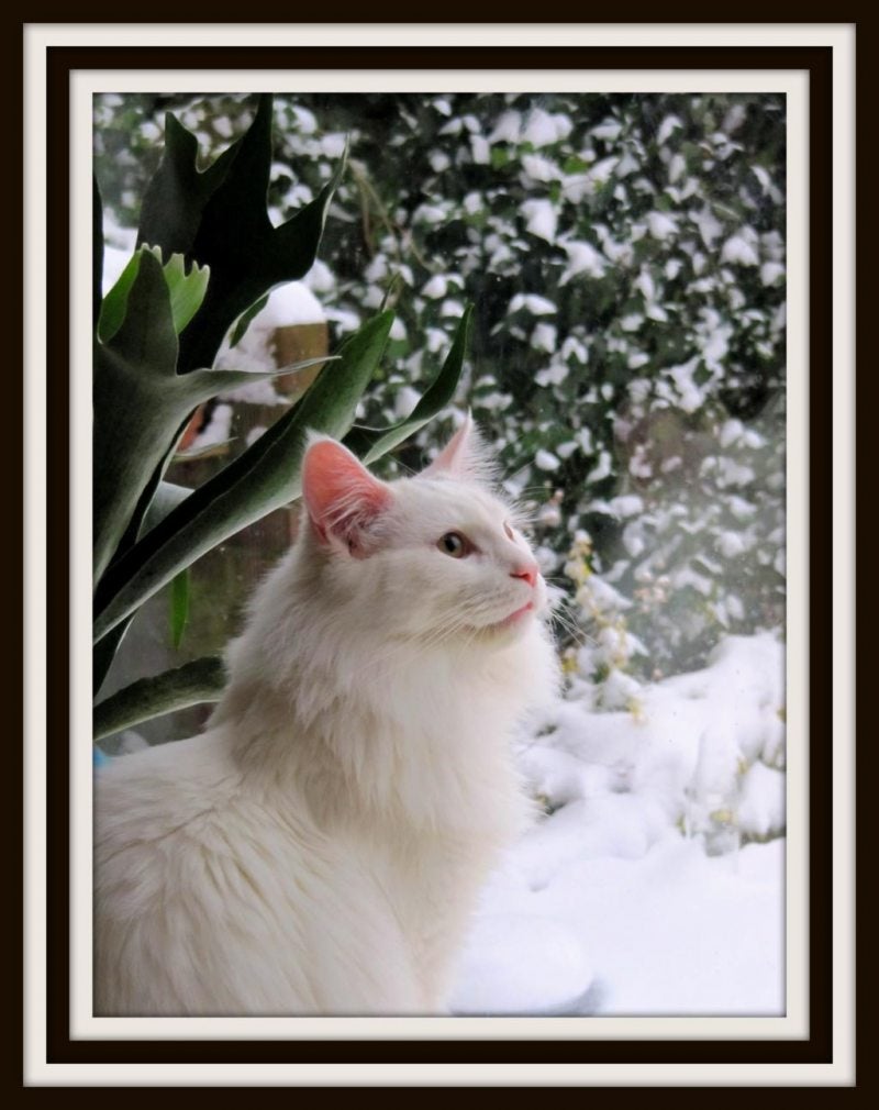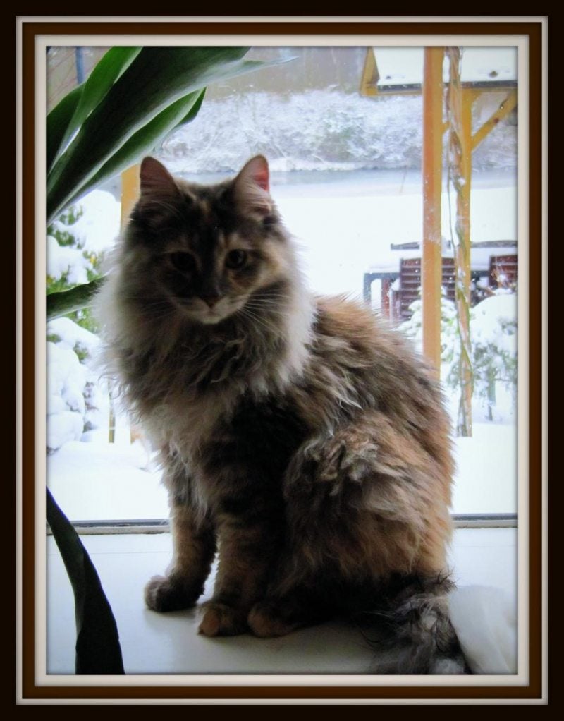 En dan nog de vier "kleintjes". Toen het vorige week sneeuwde was het heel bijzonder en zaten ze ook geregeld naar buiten te kijken maar we zijn nu een week verder en het nieuwe is er al weer af. Ik merk ook dat ze ouder worden. Nou zijn het al helemaal geen drukke diertjes maar het wordt steeds rustiger. Ze hebben nog wel hun renuurtje en dan is het ook heftig. Ze zijn groot maar ook klein. Waardoor ze met hun lompe lijfjes een beetje als een olifant in de porseleinkast stampen. Ze gaan dan achter elkaar aan rennen en nemen voor het gemak alles mee wat op hun pad staat. Remmen te laat zodat ze op vloer een langere remweg hebben. Met een beetje geluk eindigt hun renpartij in de keuken en knallen ze tegen de onderkant van de keukenkastjes. Of ze rennen boven en horen we beneden allerlei spulletjes omvallen. Meestal valt de schade wel mee maar dat komt ook doordat het huis kittenvriendelijk is ingericht. Maar dan blijven er nog zat dingen die het niet overleven. Alles is vervangbaar.